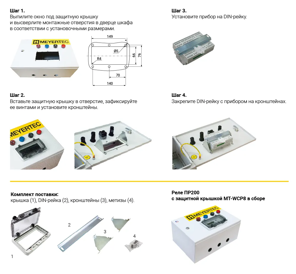 Защитные крышки MT-WPС8 предназначены для установки приборов в автоматном корпусе на дверце шкафа управления. Крышки обеспечивают визуальный контроль работы прибора, возможность его настройки и управления.